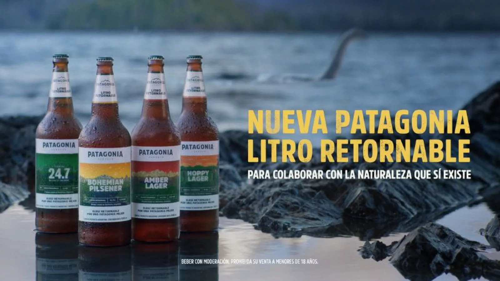 Para el lanzamiento de sus nuevas botellas retornables, Cerveza Patagonia en colaboración con su agencia creativa draftLine y la productora The Movement by Landia lanzaron un spot publicitario que invita a mirar lo importante y no dejarse llevar por los mitos. Lo hace a través de un personaje muy conocido por los argentinos: Nahuelito, la criatura legendaria que se dice que habita en el Lago Nahuel Huapi y que algunas personas comentan haber visto. A través de este monstruo imaginario y de un pato más realista, el spot invita a conmoverse por la naturaleza real con problemas reales y elegir envases retornables, no descartables, para así cuidar la naturaleza que sí existe.