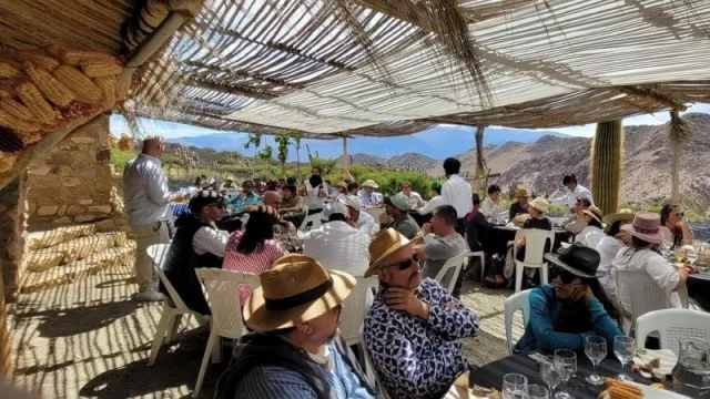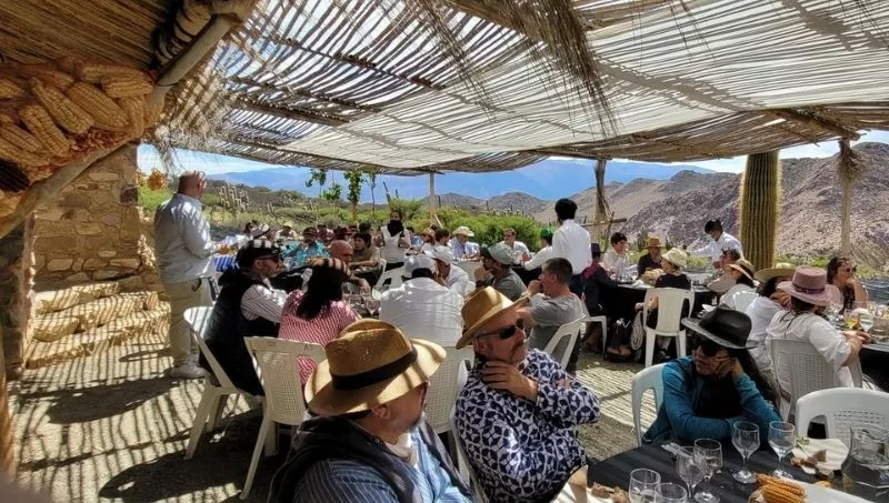 La experiencia los llevó a ascender hasta la Cava Mina Moya, donde realizaron la ceremonia en honor a la Pachamama, la estiba de los vinos y en el refugio de montaña del viñedo compartieron un almuerzo andino con el maridaje de las distintas bodegas de la Quebrada de Humahuaca y "El Molle", de Monterrico.