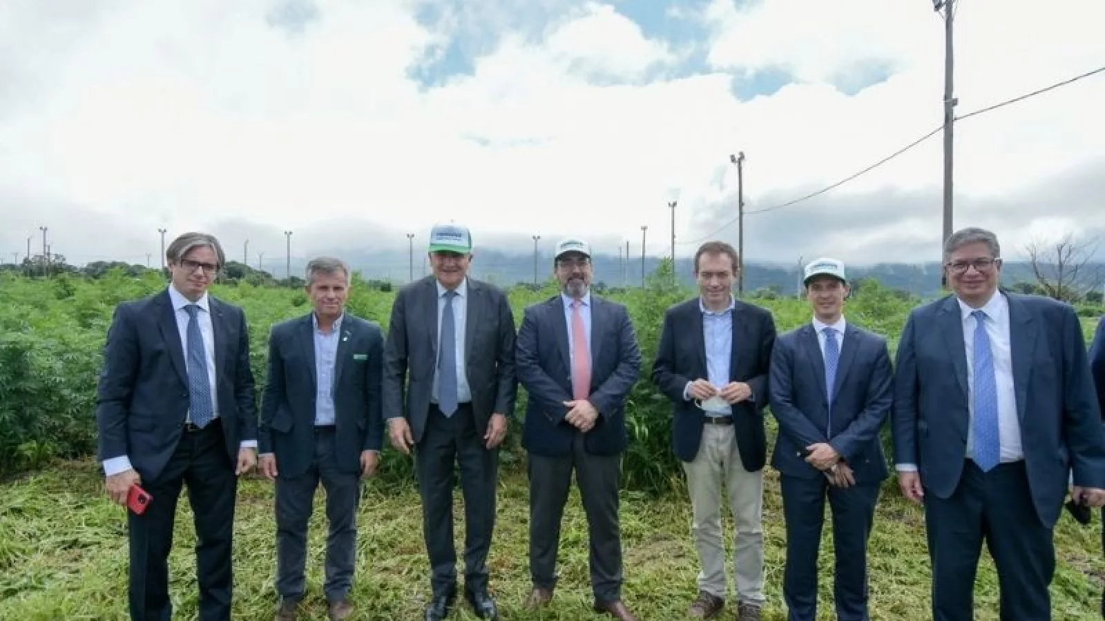 Gerardo Morales, Gobernador de Jujuy, junto a Sergio Granados, presidente de la CAF; Christian Asinelli, vicepresidente; Gustavo Beliz, secretario de Asuntos Estratégicos de la Nación y el subsecretario de su comitiva, recorrieron el núcleo de cultivo y el Complejo de Biotecnología de la empresa estatal Cannava S.E, en Finca El Pongo, en donde se desarrolla la producción pública de cannabis medicinal