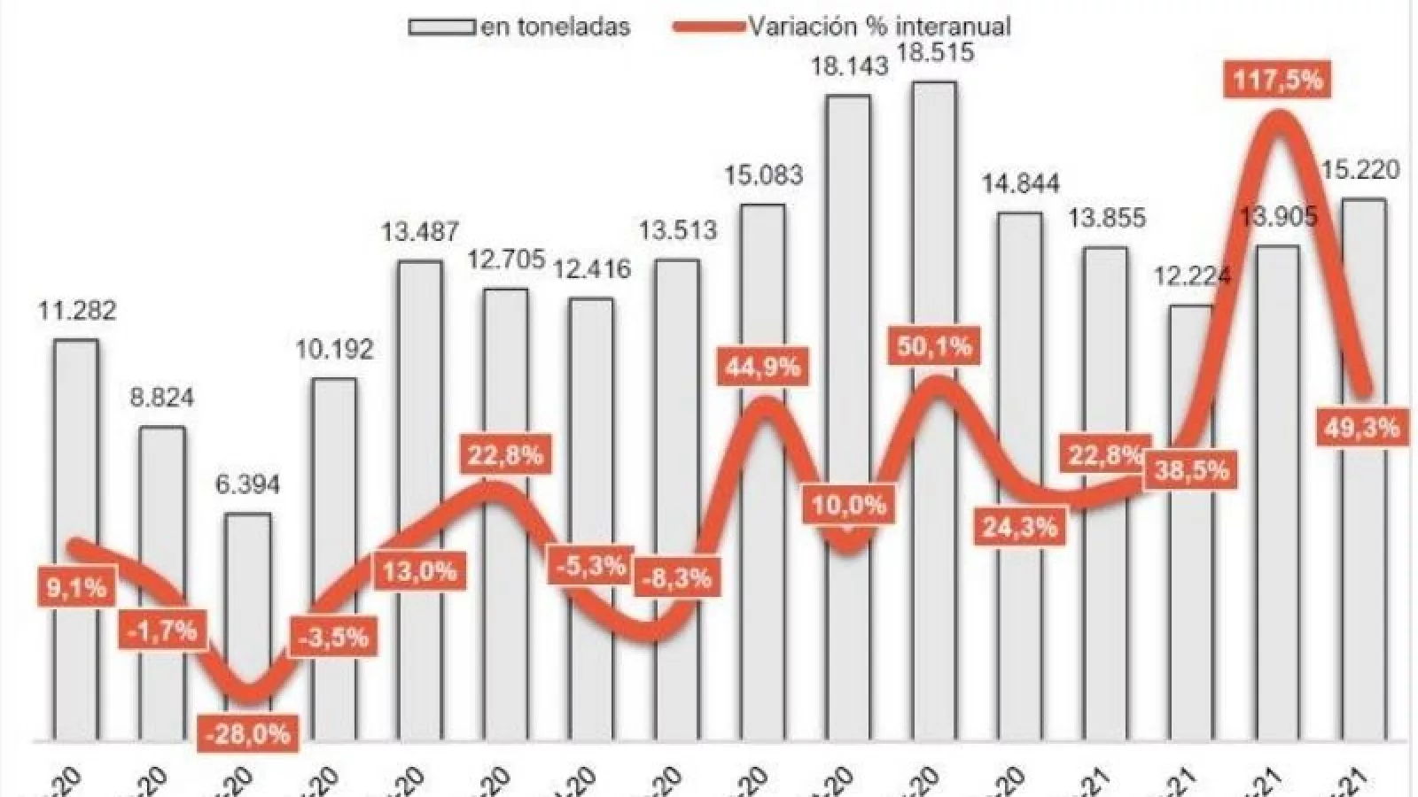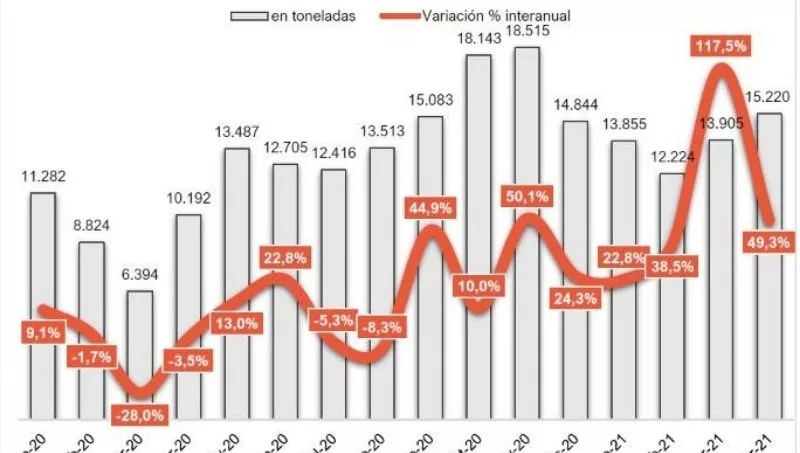 A nivel nacional, en abril, el consumo total de cemento creció un 134,8% interanual, registrando un total de 947.965 toneladas. En este marco, el consumo de cemento en bolsa se incrementó en un 64,3%, y el cemento a granel creció 636,3%, explicado a partir de un mayor avance de obra pública, y por haber sido este tipo de envase el más afectado durante el inicio de las restricciones del año pasado.