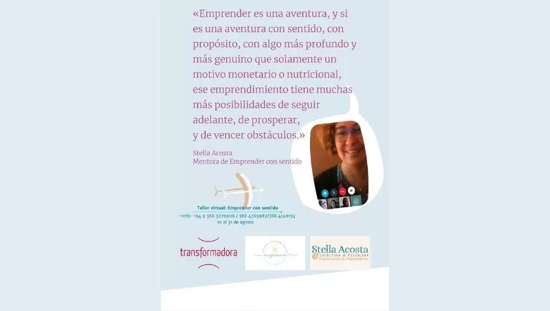 Para esas personas es la convocatoria: “para toda persona que tenga un emprendimiento o una idea de negocio”, dijo Stella, enmarcando que “la realidad es que muchas personas se preguntan si quieren seguir en sus trabajo y muchas otras se han quedado sin trabajo”. “Pueden reinventarse, pueden generar otros espacios”. También, agregó la psicóloga, “hay personas que ya tienen un emprendimiento que hace rato que está pero no crece, no saben cuál es la dificultad ni qué puede estar pasando”… Para esas personas es el taller Emprender con sentido.