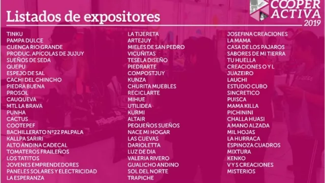 El evento es organizado el Ministerio de Desarrollo Económico y Producción de Jujuy junto a Instituto Nacional de Asociativismo y Economía Social (INAES), dependiente del Ministerio de Salud y Desarrollo Social de la Nación, quienes estarán con equipos en la provincia para brindar asesoramiento en materia legal y técnica a los cooperativistas y emprendedores participantes.