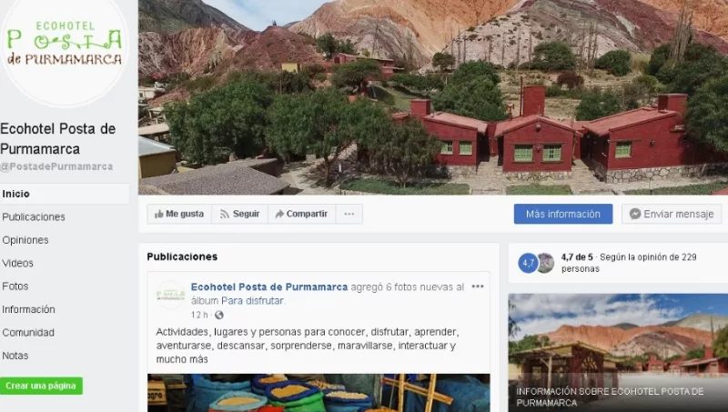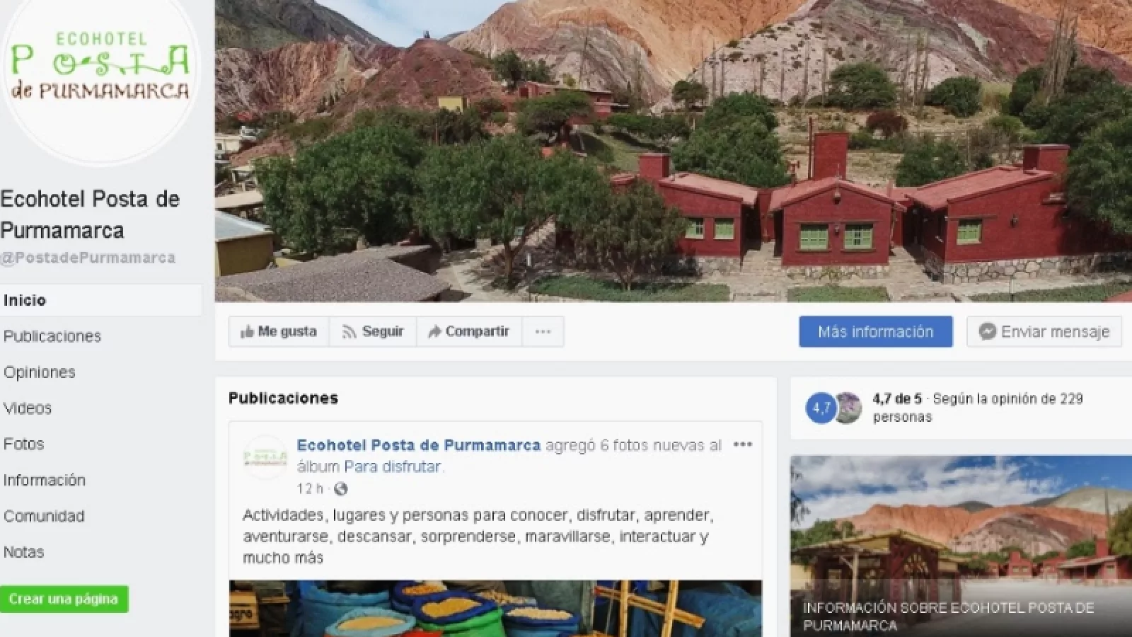 Luciana Vilte administra Ecohotel Posta de Purmamarca, negocio iniciado por sus padres y del cual tomó las riendas en 2004. Se ocupó del legado familiar y lo trasformó en uno de los primeros hoteles ecológicos del país. Su compromiso con el medioambiente, las comunidades locales y la arquitectura auténtica del lugar le permitieron entrever en Facebook un gran aliado en la comunicación de esos principios: dejó de imprimir papel, los folletos desaparecieron de su recepción y todo pasó a ser 100% digital.