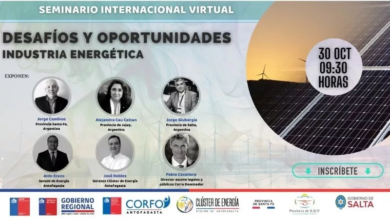 En el Seminario expondrán Aldo Erazo, seremi (secretario regional ministerial) de Energía en Antofagasta, José Robles, gerente del Clúster de Energía de Antofagasta, Pablo Cavallaro, director de Asuntos Legales y Públicos del proyecto Cerro Dominador, Jorge Caminos, por la Provincia de Santa FE, Jorge Giubergia, por el Gobierno de Salta, y Alejandra Cáu Cattán, por nuestra provincia.