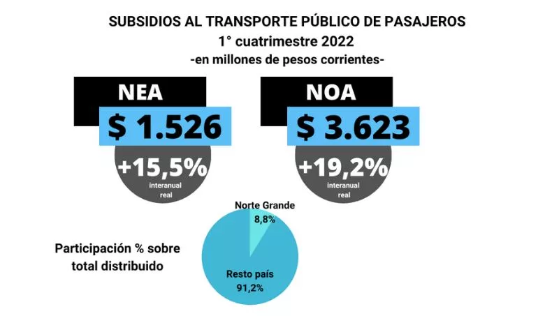 Este incremento se debió a haber experimentado el mayor alza entre las regiones del país: el total nacional muestra una variación del 4,4% real de los envíos en concepto de subsidios, pero en el NEA fue del 15,5% y en el NOA del 19,2%, siendo las dos únicas regiones del país donde estos fondos crecieron en doble dígito en términos reales.