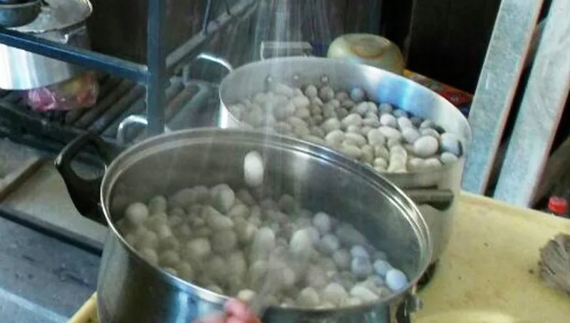 “De un capullo – compartió Delia – se obtiene entre 800 y 1.000 metros de hilo continuo o devanable, que se diferencia por su calidad del hilo discontinuo, que presenta una estructura más rústica. Y con ambas técnicas, se logra aprovechar el capullo en su totalidad”. “Para obtener el hilo continuo, se debe cortar el ciclo del insecto en el punto en donde está por salir, que es cuando el capullo está entero todavía”, detalló.