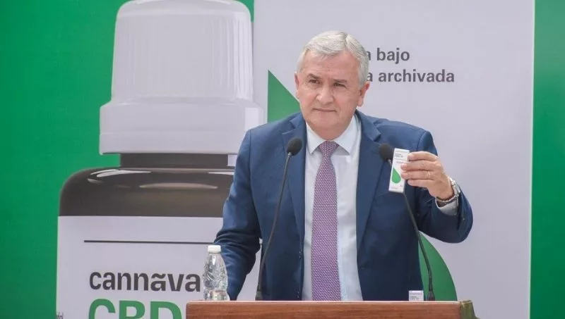 En un hecho histórico para Jujuy y el país, Gerardo Morales, gobernador de la provincia, y el presidente de la empresa Cannava S.E, Gastón Morales, entregaron el primer lote de aceite de cannabis de grado farmacéutico - CBD 10, producido en Jujuy.