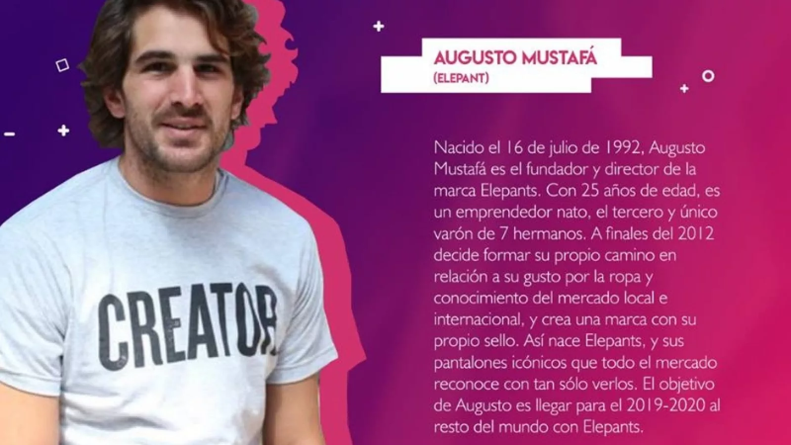 El lema es “¡Animate a Emprender!”, y en esta edición de Emprender Jujuy los estímulos son muy alentadores, si se tiene en cuenta el trayecto de cada uno de los emprendimientos que se pondrán en común para el análisis. el encuentro ofrecerá las conferencias de Augusto Mustafa, titular de la firma Elepants, y Emprendedor Forbes 2017; Agustín Mayorga, titular de la empresa Mikuna, dedicada a la producción sustentable y gastronomía e industria saludable; Facundo Corradini, titular de Terramaq SRL, dedicada a la reutilización de plásticos; y Emmanuel Inca, titular de la firma AXIUM 3D, dedicada a la fabricación de impresoras 3D.