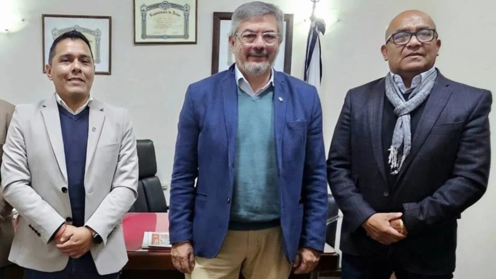 Fabián Tejerina, presidente del Consejo para el Desarrollo y Promoción del Corredor Capricornio y vicepresidente 1° de la Cámara de Diputados, recibió a empresarios jujeños interesados en impulsar esta iniciativa, entre ellos Daniel Giacoppo, del Centro Argentino de Despachantes de Aduanas; Gustavo Guzmán, de Total Trading; y Martín Llanos, secretario de Producción de Perico.