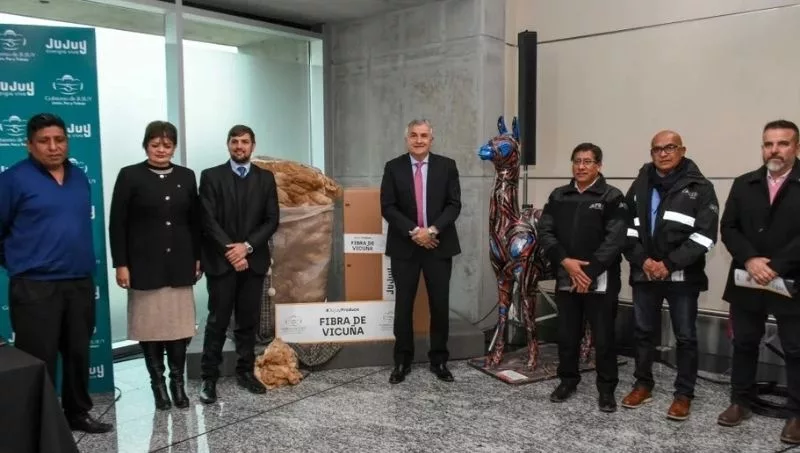 El gobernador Gerardo Morales presidió el acto con el que se oficializó la exportación de fibra de 124,665 kg de vicuña a Italia, producto de un trabajo coordinado entre los ministerios de Desarrollo Económico y Producción y de Ambiente y Cambio Climático. Este primer embarque, adquirido por la empresa Loro Piana Spa, se importó a un precio de venta de U$D 468 por kilo.