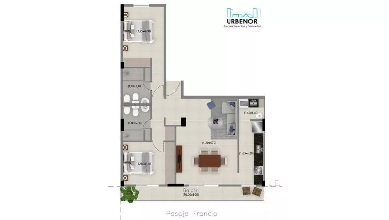 Departamentos de diversas tipologías, pero uno de ellos es la estrella del Edificio Francia I y porque no, en el mercado: Departamento de 2 dormitorios, en primer piso, con una superficie de 84 m2. Un semipiso de características únicas: Cocina completa con mesada de granito natural termo tanque de alta recuperación cocina, mueble bajo mesada y alacena. Todos los ambientes cuentan con pisos y revestimientos de porcelanato. Living comedor amplio y luminoso, 2 baños completos con bañera; dos dormitorios amplios, uno de ellos con vestidor de MDF y el otro con placad de MDF y acceso al balcón.