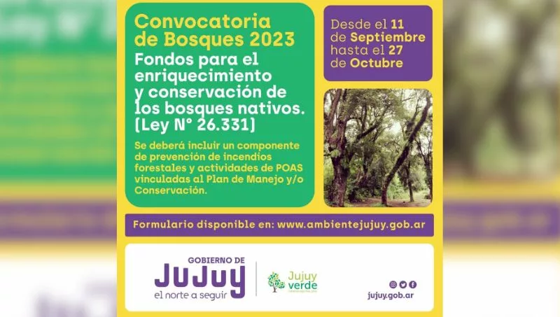 Desde hoy y hasta el día 27 de octubre del año 2023 inclusive, podrán presentar las solicitudes de financiamiento de planes o proyectos a ejecutarse en predios incorporados en el Plan de Ordenamiento Territorial Adaptativo para las Áreas Boscosas de la Provincia de Jujuy, en las siguientes modalidades: