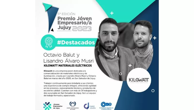 Kilowatt es una empresa joven dedicada a la comercialización de materiales eléctricos y de iluminación, creada por Lisandro Álvaro Musri y Octavio Balut en marzo del año 2020, en San Salvador de Jujuy. A pesar de haber tenido que afrontar desde el día de su inauguración la pandemia del Covid-19, Kilowatt logró sortear las dificultades pudiendo crecer, consolidarse y expandirse.