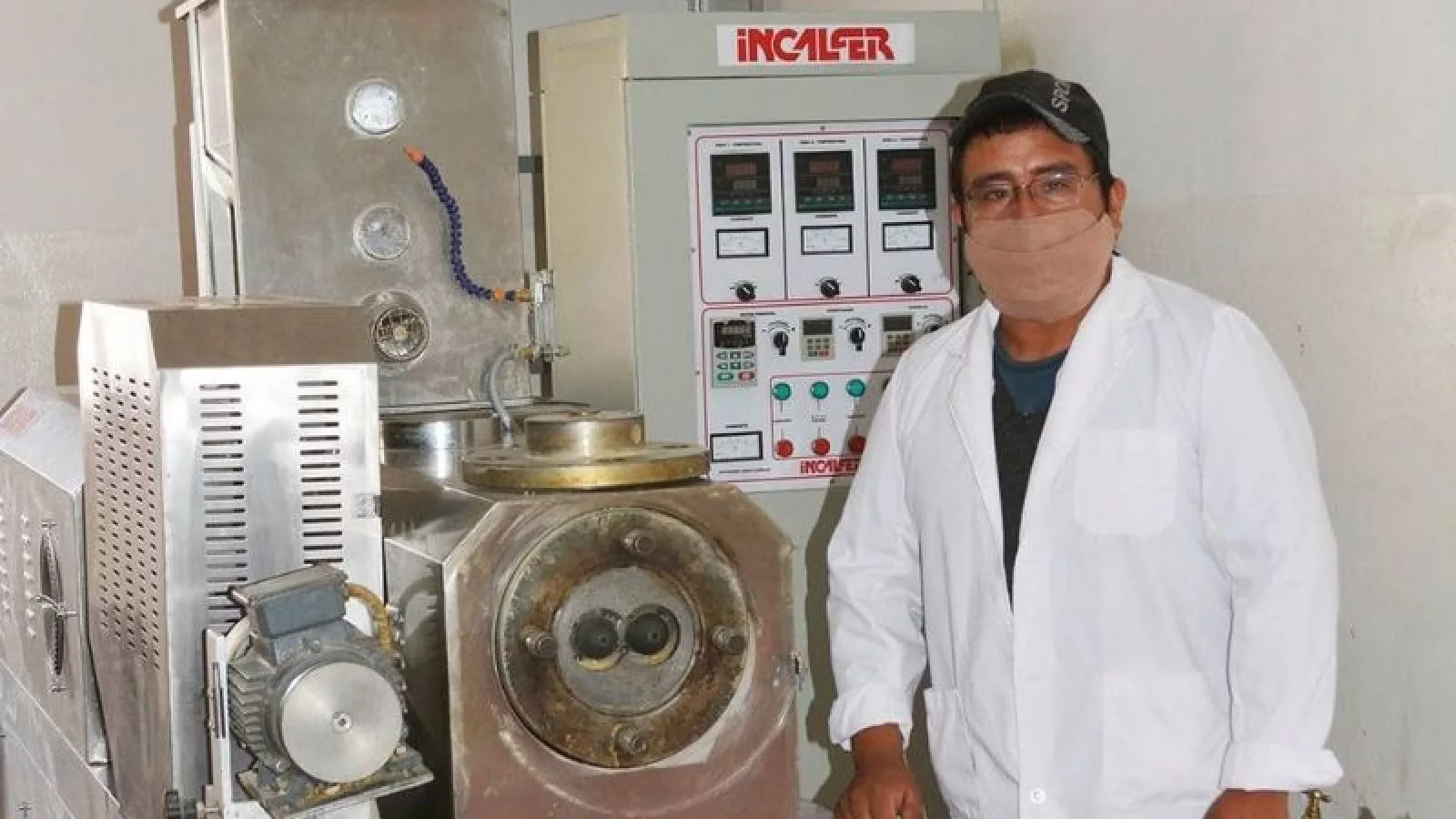 Jorge Vilte, coordinador de Producción en la planta que CAUQUEVA tiene en la entrada norte de Maimará, compartió detalles del proceso: en los campos de las y los productores, se acopian maíces capia que ya llegan desgranados a la planta. “Son de zonas como Humahuaca, Huacalera, Purmamarca, Tumbaya. Se los aventa bien para limpiarlos y se los manda al molino, donde se los muele en grueso, tipo frangollo. La harina fina la usamos para los fideos, para la elaboración de chicitos la usamos gruesa”, explicó.