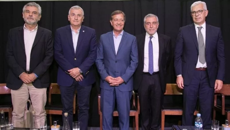 El mandatario jujeño compartió escenario con los ministros nacionales de Agricultura, Ganadería y Pesca, Julián Domínguez; y de Ciencia, Tecnología e Innovación, Daniel Filmus; el gobernador de Mendoza, Rodolfo Suárez; y el presidente de la COVIAR, José Zuccardi.