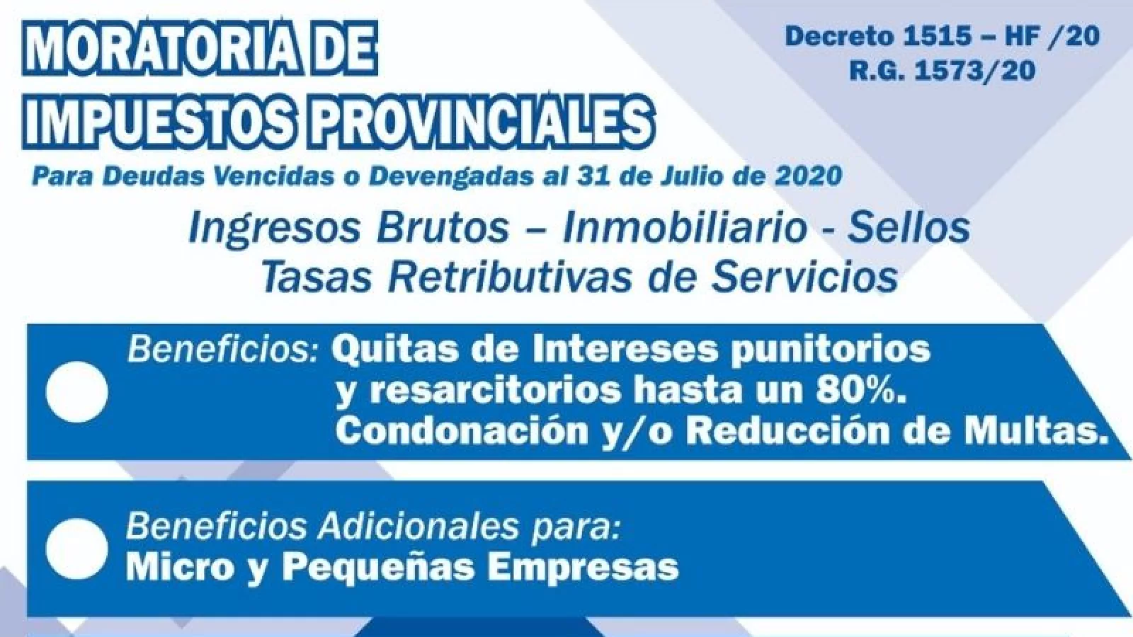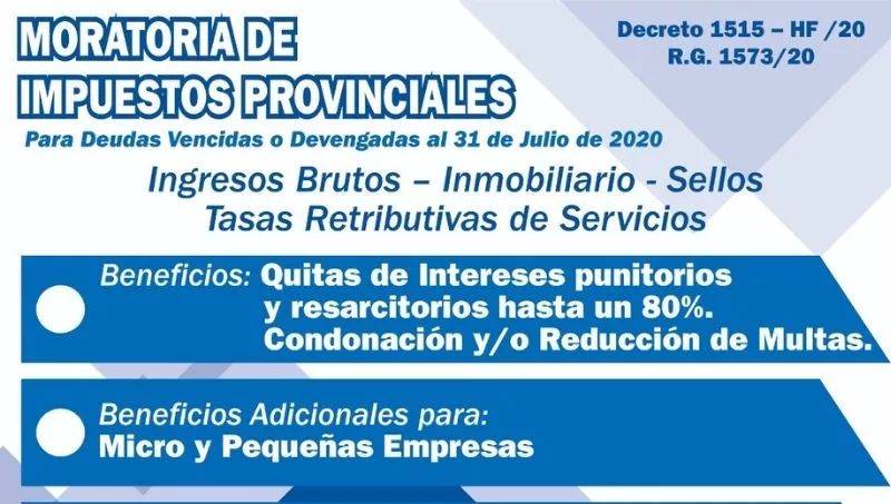 A principio del mes, el Gobierno Provincial a través de la Dirección Provincial de Rentas emitió el Decreto. 1.515/20, en el que dispuso un nuevo régimen para que los contribuyentes puedan regularizar sus obligaciones tributarias provinciales en el marco de la emergencia Sanitaria; y como forma de aliviar los efectos causados por la Pandemia. Asimismo, establecieron las condiciones de la moratoria en la Resolución General Nº 1.573/20.