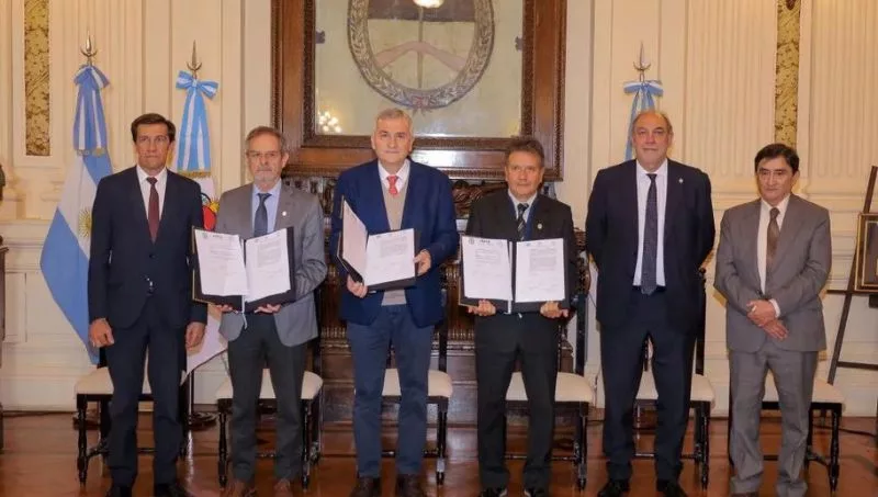 En un acto desarrollado en el Salón de la Bandera de Casa de Gobierno, el gobernador Gerardo Morales, el rector de la Universidad Nacional de Jujuy, Mario Bonillo y el rector de la Universidad Nacional de Tucumán, Sergio José Pagani rubricaron un convenio académico-científico que establece el marco para encarar en conjunto el proceso que concluya en la creación de la carrera de Medicina en Jujuy.