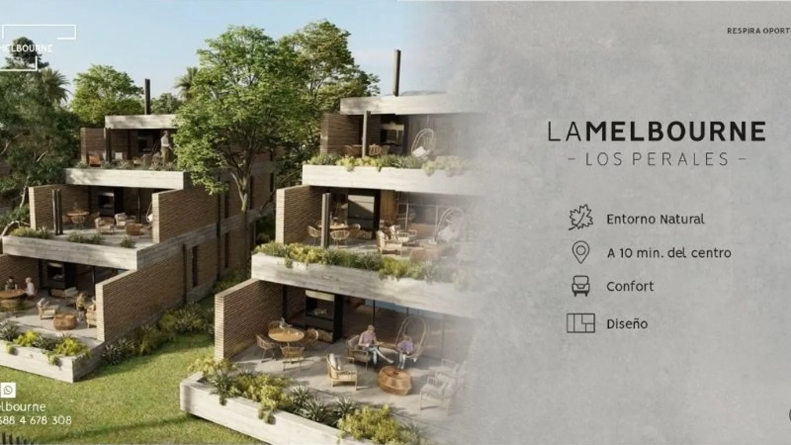 Con cuatro módulos de tres unidades funcionales cada uno, 1.500 m2 de espacios verdes íntegramente intervenidos con especies autóctonas, solárium con pileta. La Melbourne constituye un concepto integral que suma alto confort interior a cada unidad en venta.