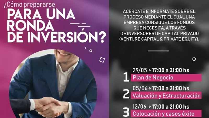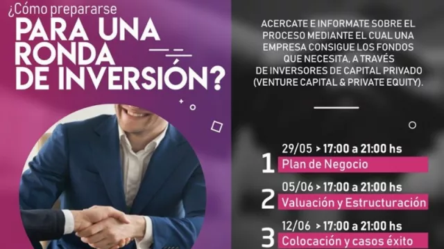 Las actividades siguen un cronograma que implica la aprobación de cada instancia, que se distribuye de la siguiente manera: 29 de mayo, de 17 a 21 hs, sobre Plan de Negocio; 5 de junio, en igual horario, sobre Valuación y Estructuración; y 12 de junio, también de 17 a 21 hs, sobre Colocación y casos éxito.
