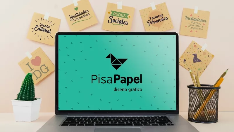 Sobre el nombre y el logo del estudio, Victoria explicó “el nombre “pisa papel” ya se venía trabajando y con Alfredo terminamos de cerrar la idea”. Continuó “la grulla del logo, refiere a la época en la que iniciamos, estaba en tendencia la creación de imágenes a partir de triángulos, pero, además, indica lo que es trabajar en diseño: una tarea meticulosa, específica y detallista, como el origami”.