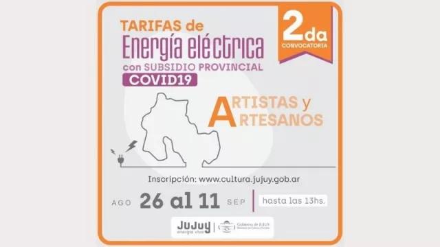 2º llamado para la Tarifa Eléctrica con Subsidio Provincial: turno de escuelas de arte, espacios culturales, artistas y artesanos