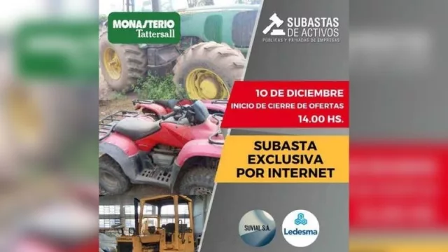 Al respecto y brindando precisiones, Martín Ruiz, Gerente Monasterio Tattersall División Subastas de Activos expresó, “La importancia de esta subasta radica en la diversidad y calidad de los bienes que se venderán, teniendo en cuenta la demora que existe actualmente en la importación de equipos para la producción. Además, a través de la subasta se pueden conseguir activos de forma casi inmediata y a precios convenientes”.