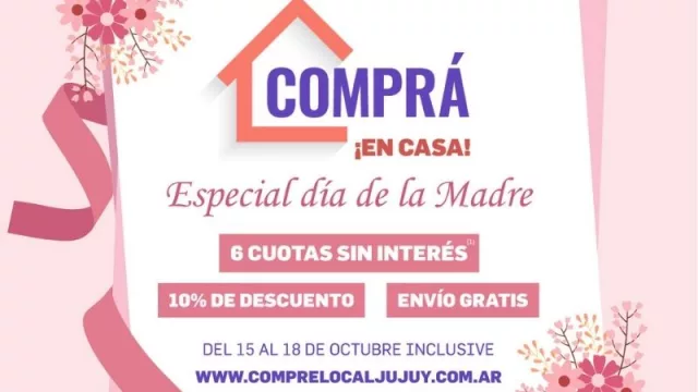 Precisó que la segunda edición del Comprá en Casa, estará vigente desde el 15 al 18 de octubre inclusive, manteniendo los beneficios de descuento del 10 por ciento en productos seleccionados, en las compras que se realicen únicamente mediante por aquí. Los rubros alcanzados son indumentaria, calzado, regalería, marroquinería, bazar, deportes, entre otros.