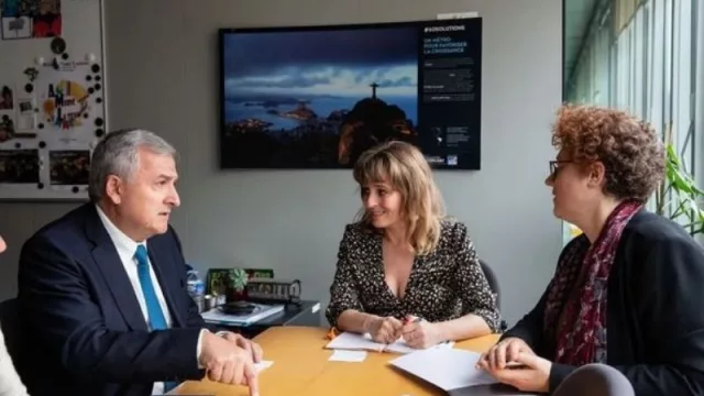 Gerardo Morales se reunió en París con ejecutivas de la Agencia Francesa de Desarrollo (AFD), a fin de abordar diversos esquemas de financiamiento para encaminar la ejecución del proyecto de generación de Hidrógeno Verde, el complejo termo-fotovoltaico que se desarrolla conjuntamente con INVAP y la planta fotovoltaica de 200 Mw prevista en El Pongo.