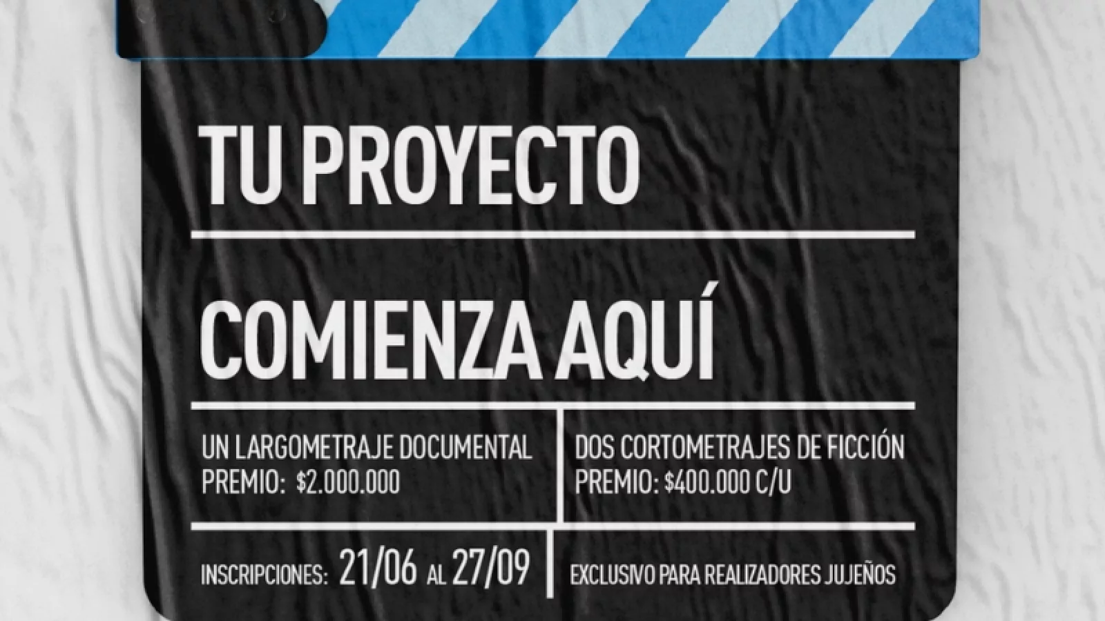 ¿Los premios? Para el Concurso Provincial de Largometraje Documental solo habrá un ganador que obtendrá un total de $ 2.000.000 para su realización; por otra parte, el Concurso Provincial de Cortometraje de Ficción tendrá dos ganadores que obtendrán un premio de $ 400.000 para cada cortometraje.