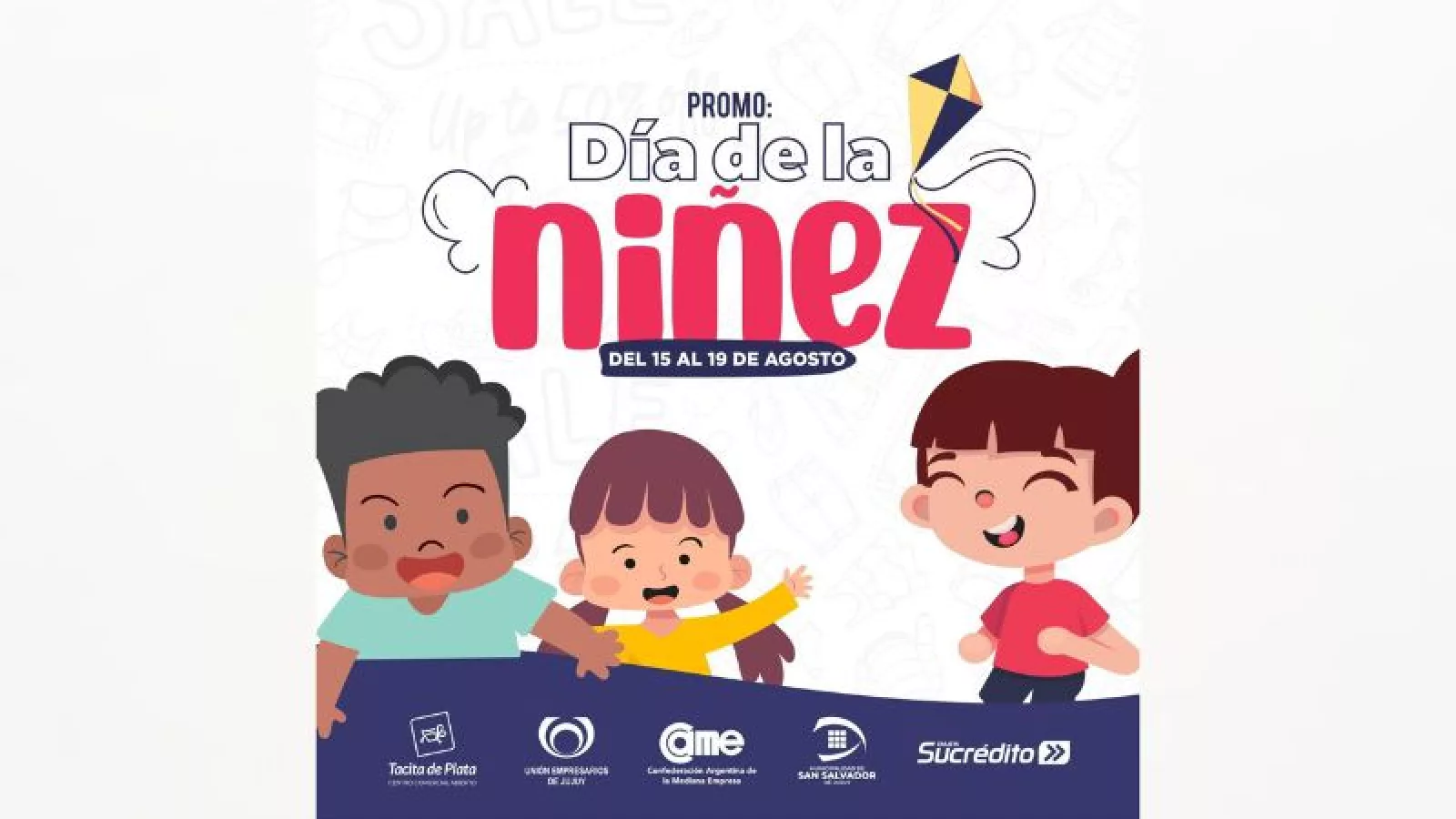 La Unión Empresarios de Jujuy (UEJ), a través del Centro Comercial Abierto “Tacita de Plata”, junto a la Municipalidad de San Salvador de Jujuy, invita a todos los comercios a sumarse a la Promo por el día de la niñez 2023. La iniciativa tiene como objetivo impulsar las ventas de los comercios jujeños en una fecha importante, y por otro, que la sociedad jujeña pueda acceder a mejores precios y promociones convenientes para que todos niños y niñas puedan tener su regalo.