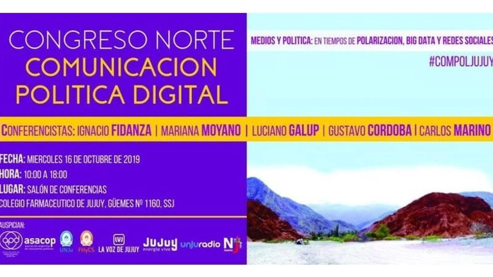 La capital jujeña será sede del 1° Congreso del Norte de Comunicación Política Digital, para tratar sobre: “Medios y Política en Tiempos de Polarización, Big Data y Redes Sociales”. Será el 16 de octubre, de 10hs a 16hs, en el Salón de Conferencias del Colegio de Farmacéuticos de Jujuy, Güemes 1160.