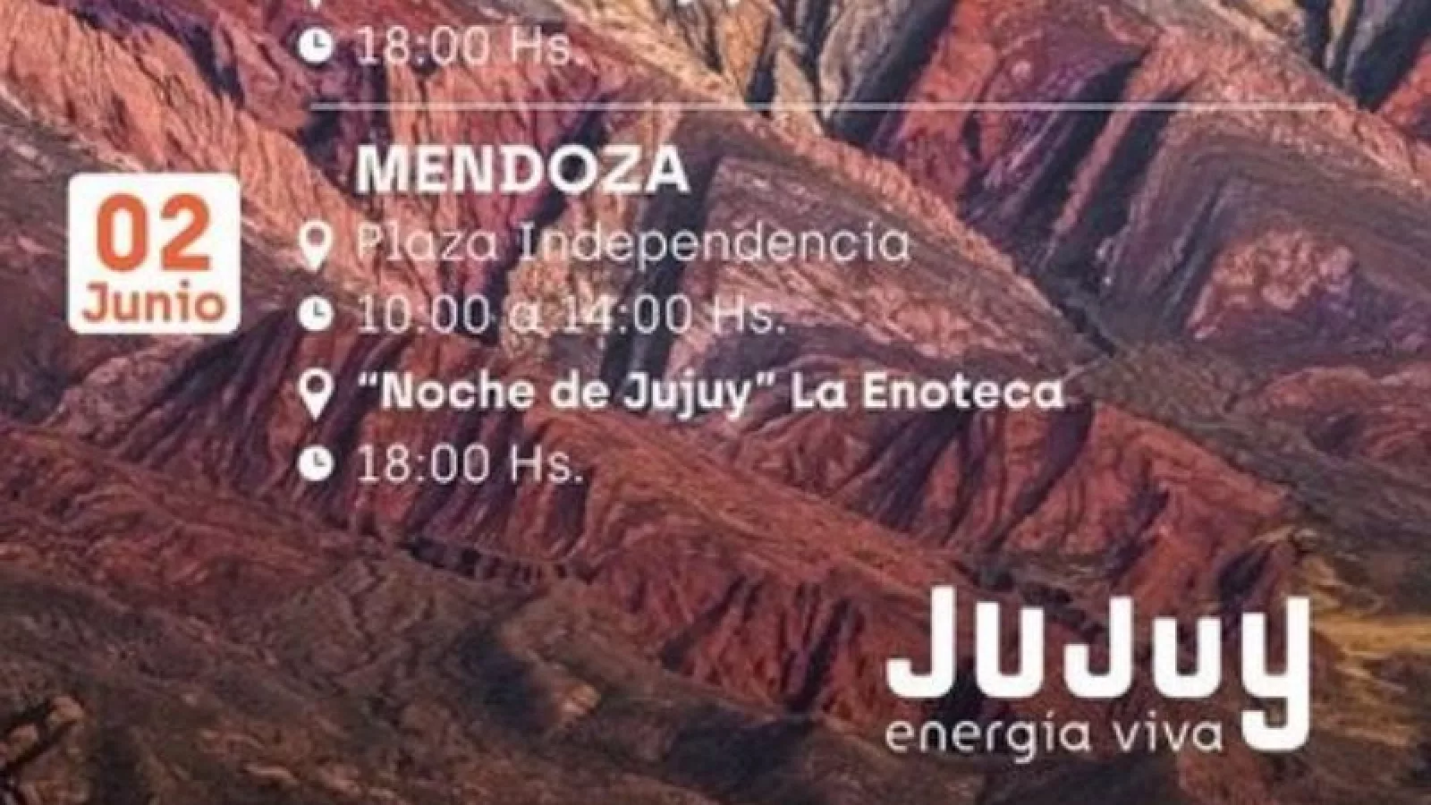 La gira de promoción turística por la región de Cuyo culminará el 2 de junio cuando la delegación jujeña se muestre en la ciudad de Mendoza, durante la mañana, en la Plaza Independencia y desde las 18, en instalaciones de “La Enoteca”, tendrá lugar "La Noche de Jujuy”.