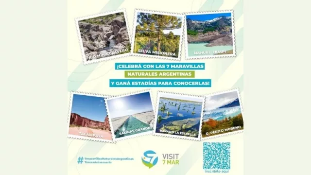 Para festejar el tercer aniversario de su consagración, que se cumplió el pasado 7 de mayo, Visit 7Mar, el programa de promoción de las "7 Maravillas Naturales Argentinas" junto a sus provincias sortearán estadías gratis para cada una de ellas a fin de conocerlas y visitarlas.