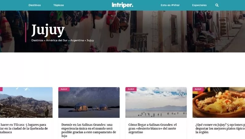 En Intriper Brand Media es el autor de la reseña de ‘Termas del Río Jordán: Un paraíso cristalino en medio de la verde selva’, ‘Trekking con llamas a más de 4.000 metros de altura y otras experiencias únicas del norte argentino’, y ‘Guía práctica para recorrer la Quebrada de Humahuaca (así debes organizar tu viaje)’. Claudia Franco Alcántara, asimismo, es quien comparte sus ‘6 consejos para sacar buenas fotos en Salinas Grandes (Jujuy, Argentina)’.