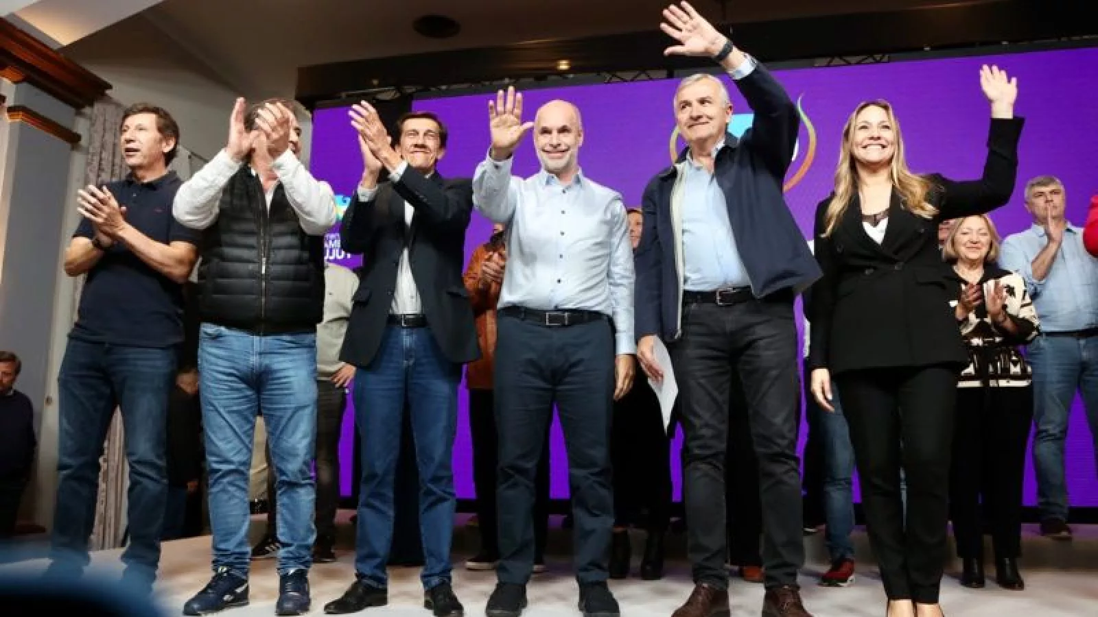 Con el acompañamiento de Horacio Rodriguez Larreta (PRO) y Martín Lousteau (UCR Evolución), Mario Negri Diputado Nacional UCR y Gustavo Posse, intendente de San Isidro, y José Cano, Gerardo Morales, junto a la fórmula electa Carlos Sadir y Alberto Bernis, celebraron el contundente triunfo que permite a la coalición oficialista continuar gobernando la provincia.